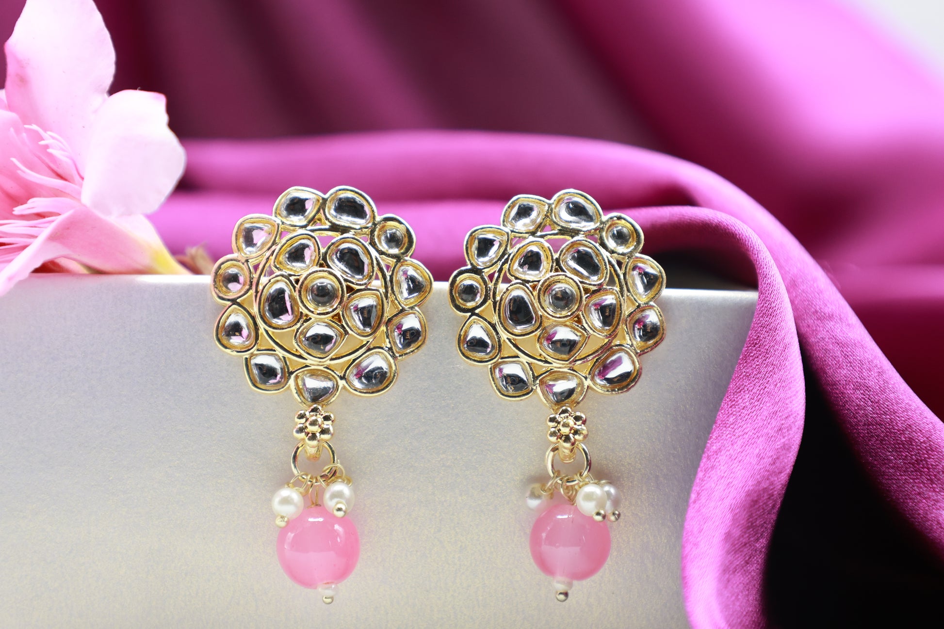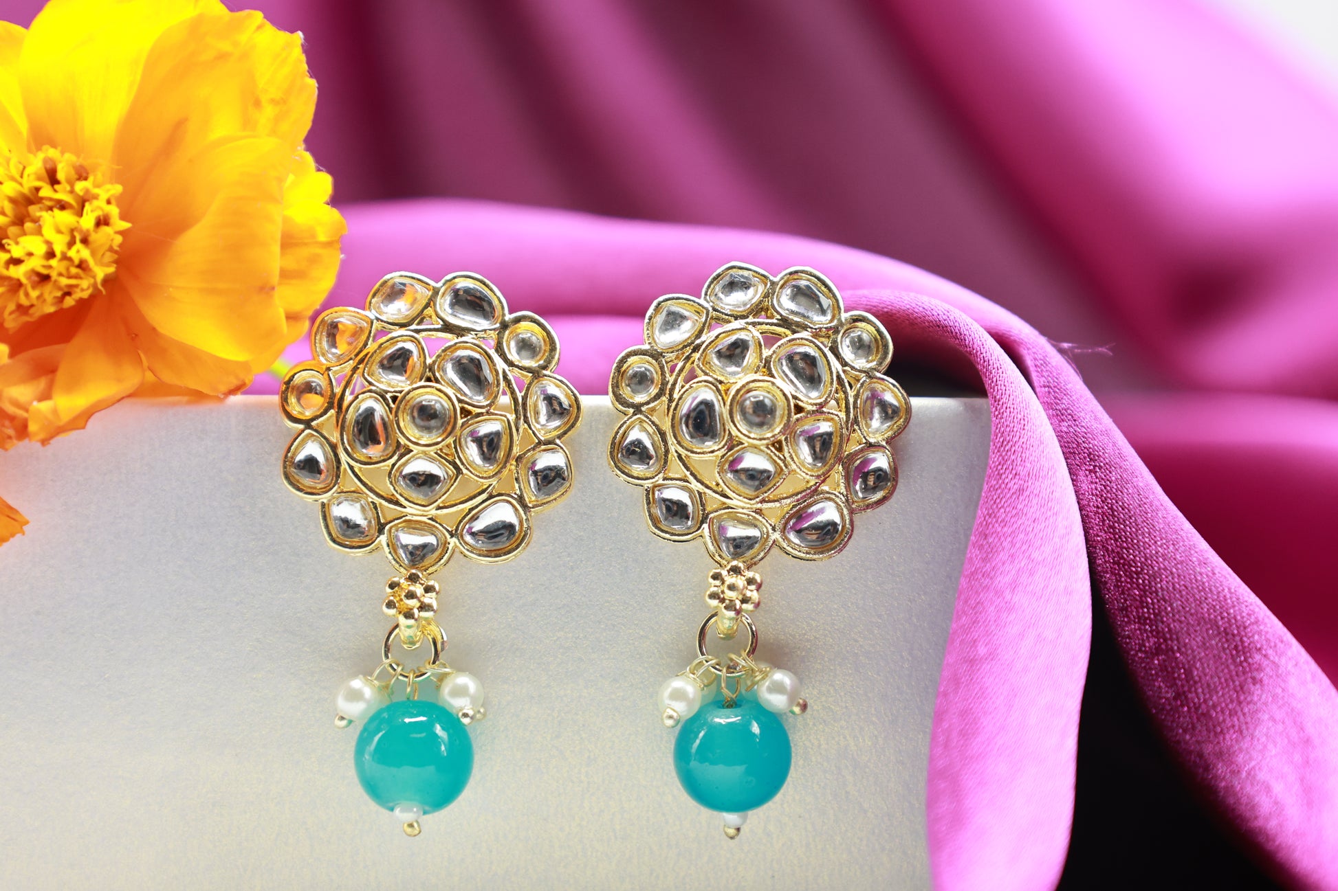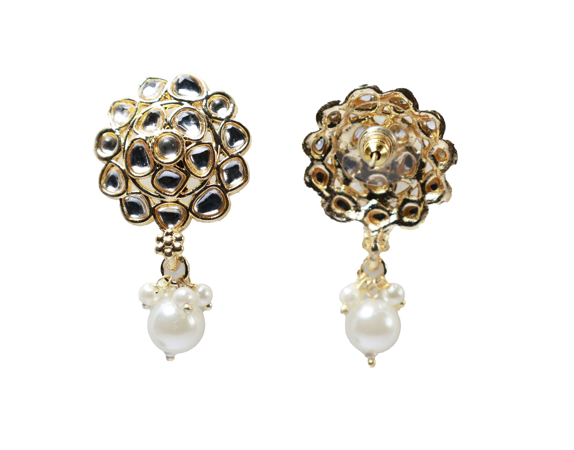 "At mywishtree, we bring your dreams to life with every piece, curated to make your wishes come true. “Kundan Earring is a symbol of timeless beauty and luxury, deeply rooted in Indian heritage. Handcrafted stud earring with pearl droplet featuring intricate Kundan stones in a flower shape. Whether it's a special occasion or your everyday look, our collection ensures you shine with elegance.