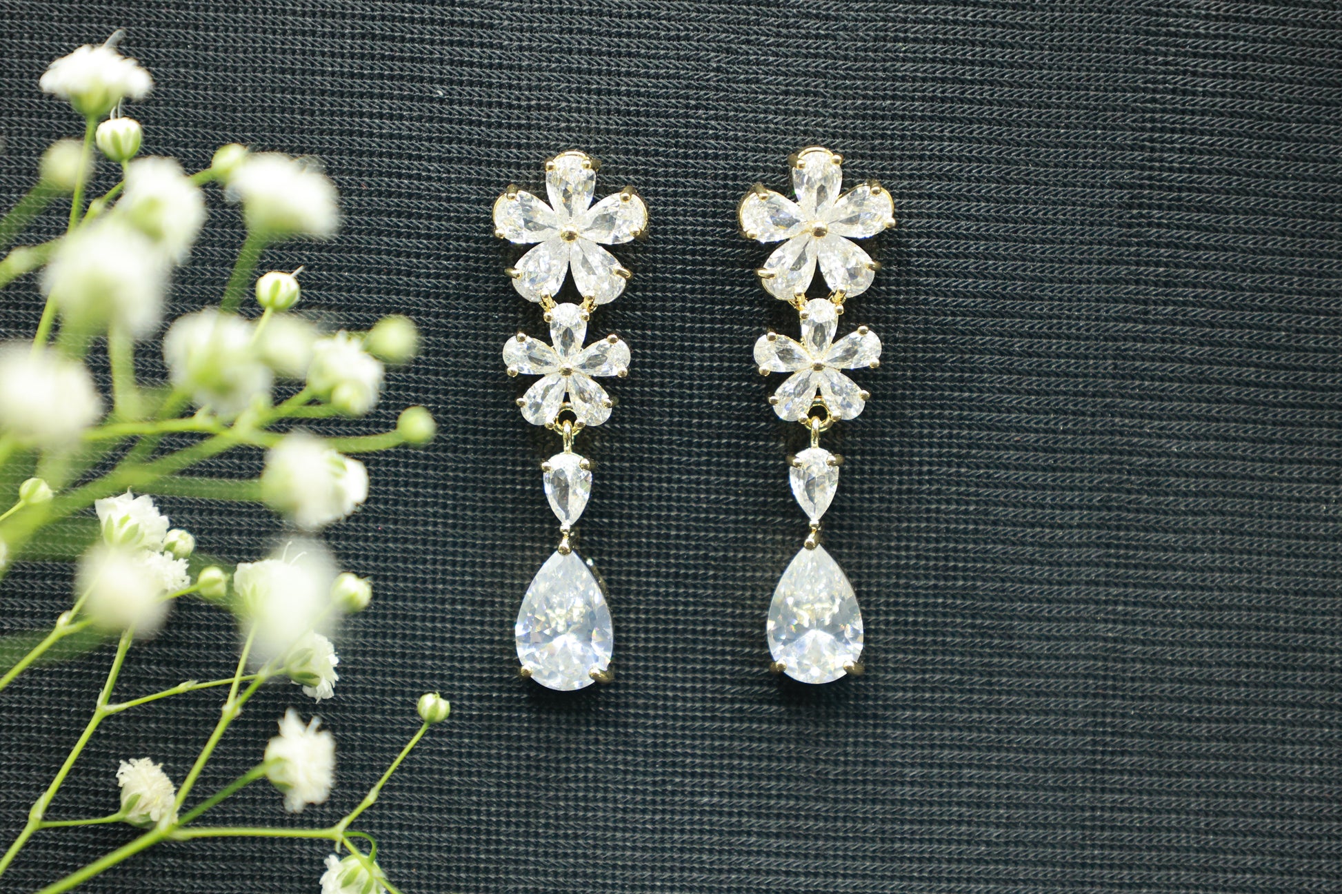 White Stone Drop Earrings